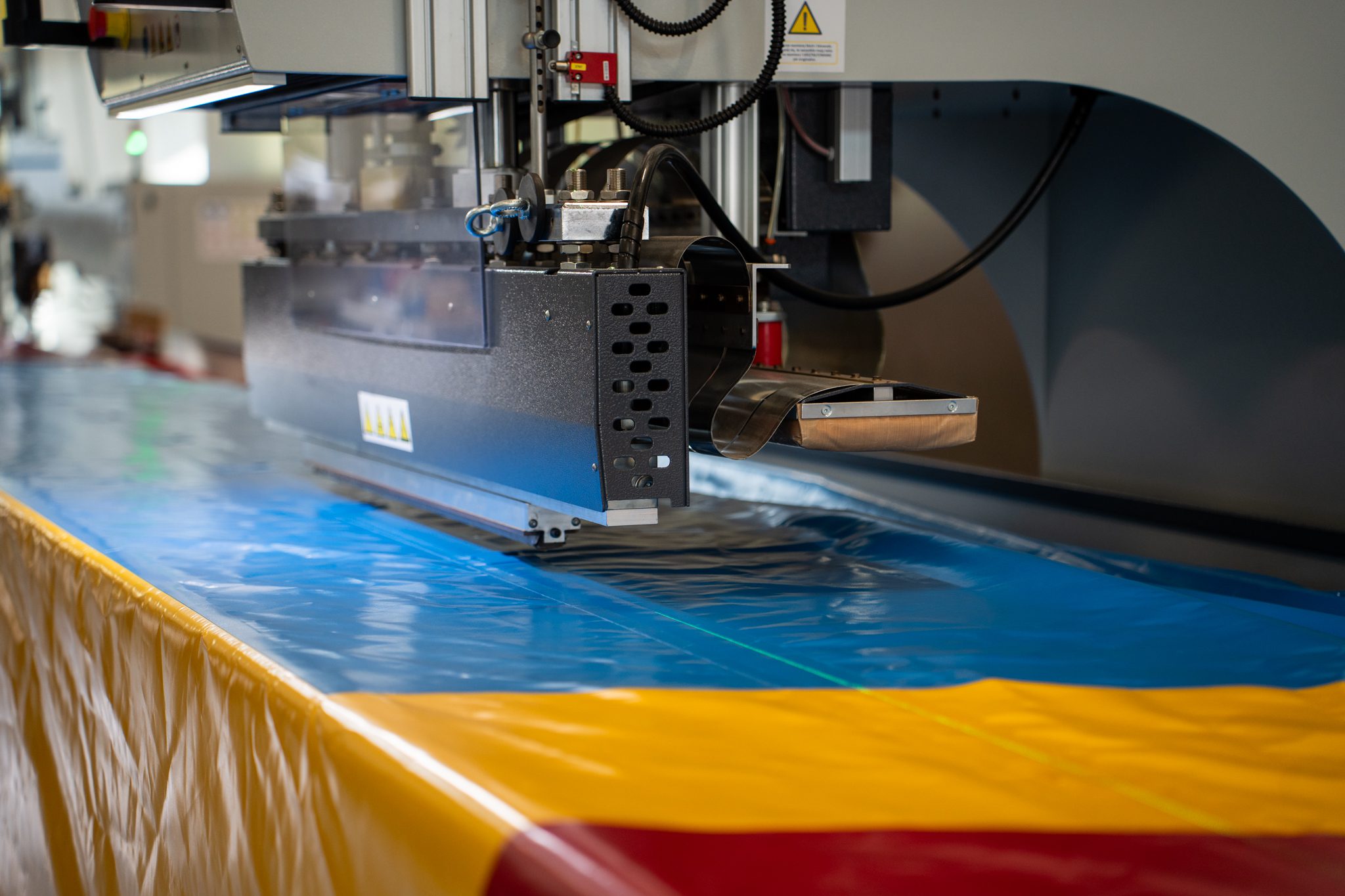 Do łączenia materiałów wykorzystujemy profesjonalne zgrzewarki wysokiej częstotliwości, które gwarantują trwałe, mocne i szczelne połączenia tkanin PCV.